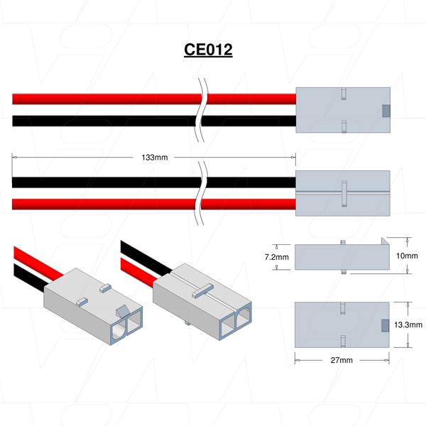 Enepower Tamiya Type Female Connector Hobby Tamiya Female Housing/Male Pin, 16AWG Silicone leads 133mm. JST-Solterco LR02F-1